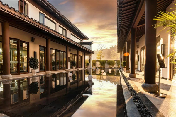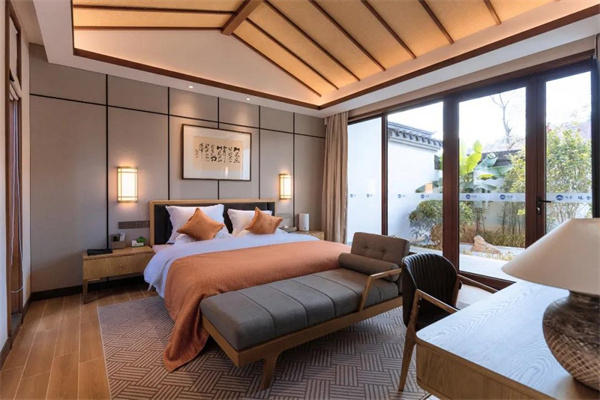 合院與周邊自然景觀相得益彰,房間采用智能控制,并設(shè)有休閑區(qū)、茶飲間、泡池等設(shè)施,極力為居客營(yíng)造安心舒適、歡暢自由的私密人居空間。