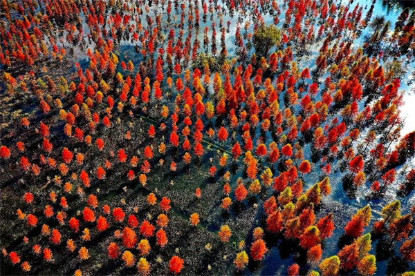 清澈的水面上倒映著一排排整齊的水杉樹,映襯著冬日溫暖的陽光,似莫奈筆下一幅色彩斑斕、濃墨重彩的油畫。不時(shí)有幾只白鷺飛過,或在水面捕食,或在林間嬉戲……這是一個能讓你靜下來,慢下來,悠閑自在,享受生活的自然之地。
