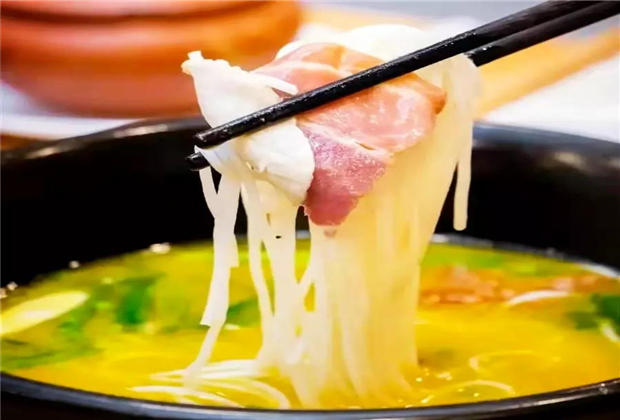“食品中的尤物”,昆明文青鼻祖,汪曾祺先生曾這樣評價云南的過橋米線。依據(jù)傳統(tǒng)熬制8小時以上的湯底,滾熱中香氣撲鼻,把鵪鶉蛋、火腿片、里脊肉、烏魚片、香酥、草芽和豌豆尖等等豐富的精選食材按次序燙熟,簡直像是完成一種喚醒食欲的儀式——這是最具盛名的云南菜之一。吃之前喝一口湯,“呲溜”一口米線,味覺層次豐富,鮮美卻不燥舌,怎么會不討人口腹歡喜呢?