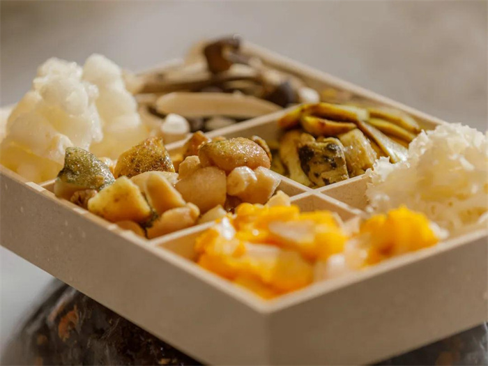 【七如意】主打本土菌菇火鍋,根據(jù)季節(jié)特供,六種野生菌拼盤,每月帶您領(lǐng)略不重樣的時令山菌。以菌菇、蔬菜、瓜果搭建的素食樂園,遵循著“不時不食”的古人智慧,跟隨著時令的腳步,帶著土地故事的食材相逢于此,以火鍋與素食料理的烹飪理念,演繹著自然風(fēng)味。