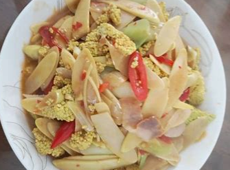 棕包花炒臘肉是一道融合了云南地方特色與美味佳肴的菜品,其獨特的風味和豐富的營養價值深受人們喜愛。這道菜不僅美味可口,而且營養豐富。棕包花中含有多種對人體有益的成分,如蛋白質、纖維素、維生素和礦物質等,具有健脾開胃、滋陰潤燥的功效。臘肉則富含蛋白質和脂肪,為人體提供能量和營養。兩者相結合,使得這道菜在營養上更加全面均衡。雖然棕包花炒臘肉美味可口且營養豐富,但也有一些食用禁忌需要注意。例如,臘肉中含有較高的鹽分和膽固醇,過多食用可能會增加患脂肪肝、胃癌等疾病的風險;同時高血壓患者和腎病患者也應慎食臘肉。因此,在享受這道美食的同時也要注意適量食用并遵循健康飲食的原則。