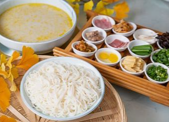 菊花具有清熱解毒、平肝明目的功能(《本草綱目》中有記載)。現代科學分析證明,菊花中含有多種對人體有益的成分,如腺嘌呤、膽堿、水蘇堿、菊酮藍、黃酮類、維生素B等,具有散熱、祛風、降火解毒、清肝明目、安胃利脈、減肥降壓、延年長壽等作用(《神農本經》記載);而米線則富含碳水化合物,易于消化;其他配料如雞肉、鮮蝦等則提供了豐富的蛋白質和微量元素,使得整道菜營養均衡。