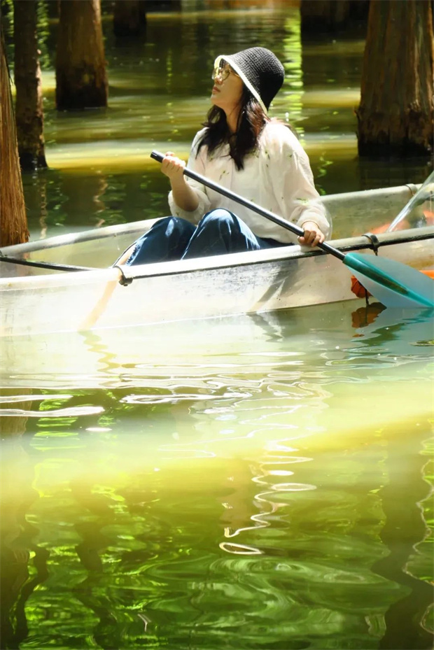 乘一葉透明游船劃入水杉林海