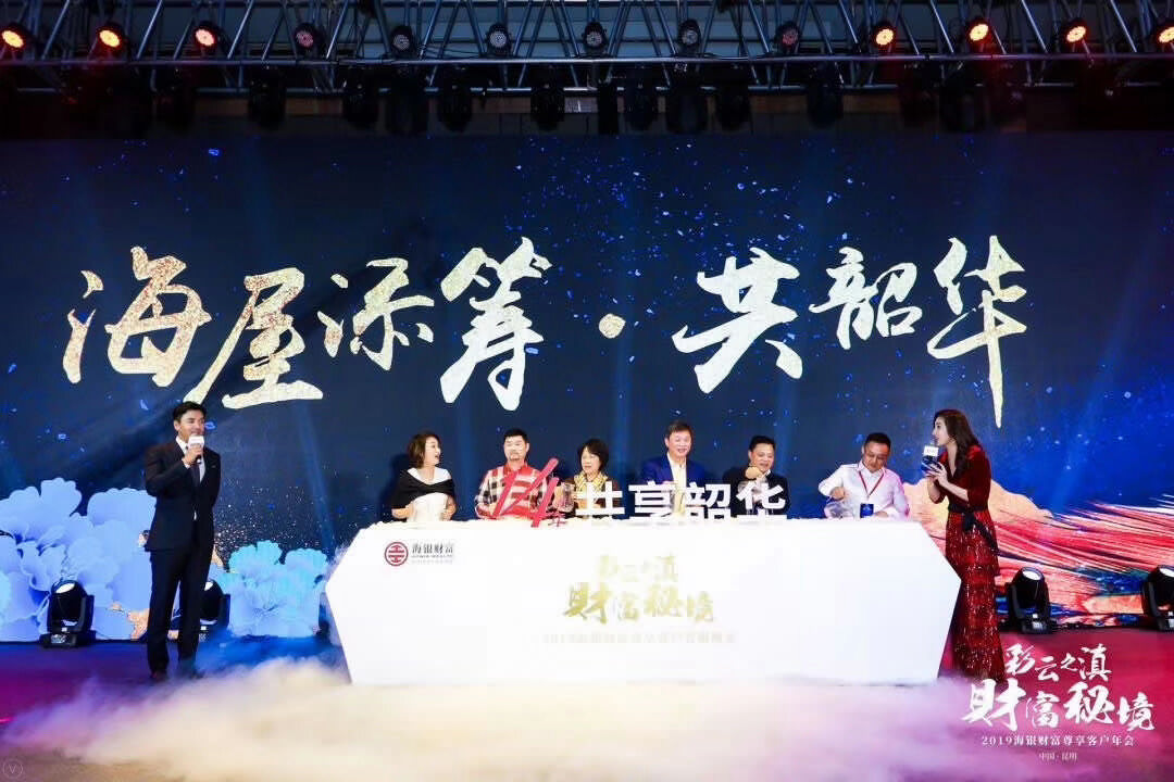 2019年海銀財富尊享客戶年會及答謝晚宴在滇池湖畔春城昆明召開;天行提供會議會展、獎勵旅游、市場活動管理及包括AV搭建、物料制作、活動場地、演藝、拓展、勞務人員等專項資源管理在內的專業會展服務。