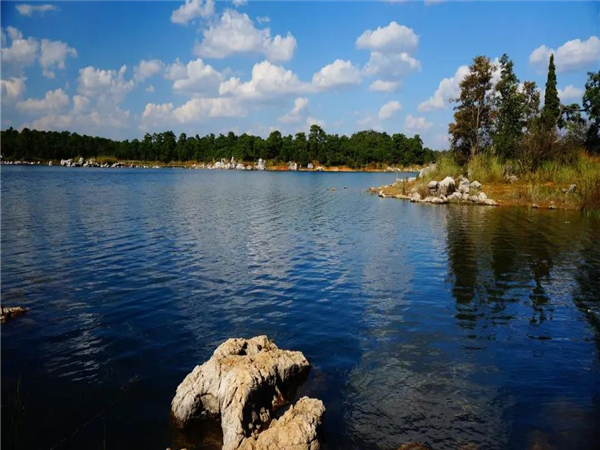 不同于石林風(fēng)景區(qū),石林長(zhǎng)湖是真正山水相連的地方。這里湖水清澈平靜,魚兒眾多,空氣清新。岸邊青山綠樹倒映,讓人心曠神怡。