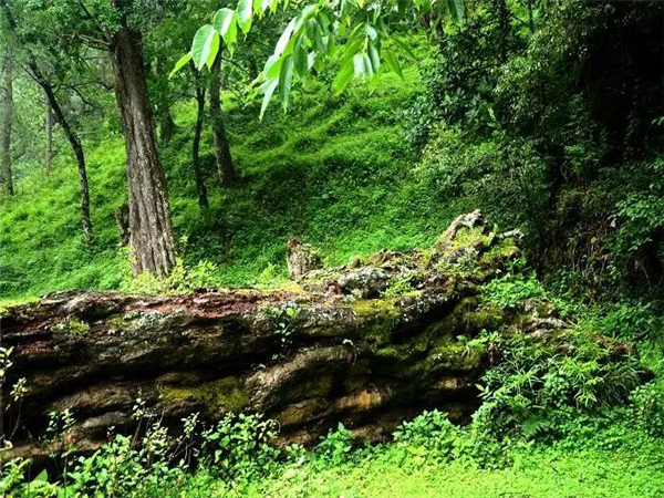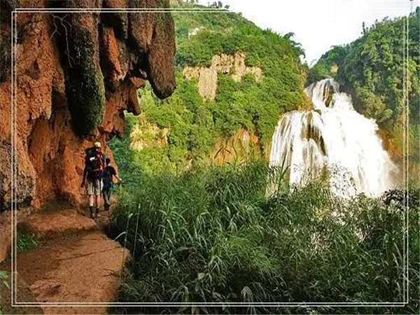 宜良縣城南的月亮谷,自然風(fēng)光絕美。春日的峽谷內(nèi)峰巒疊翠,懸崖崛地而起,瀑布與鳥鳴唱和,清泉同蟲聲奏鳴,粗莽的藤條掛在高大的樹木上,樹影遮天蔽日,仿若原始野林。